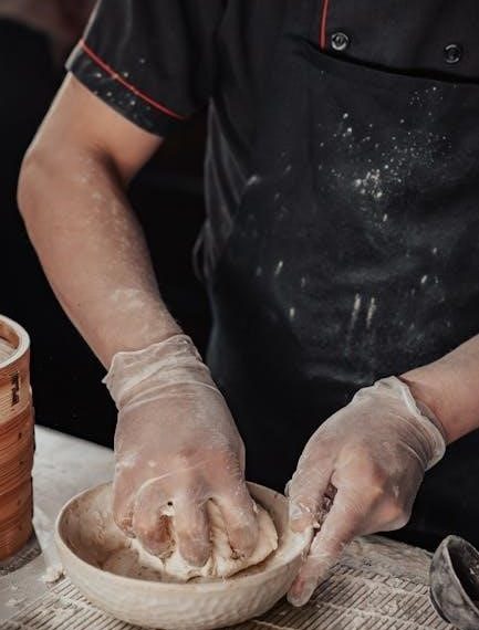 The CBK-100’s baking chamber is a durable, non-stick interior designed for consistent baking results. The paddle, made of high-quality materials, ensures thorough dough mixing and kneading. The chamber’s size accommodates various loaf sizes, while the paddle’s non-stick coating prevents dough from sticking. Regular cleaning is essential to maintain performance. The paddle is removable for easy maintenance, ensuring longevity and hygiene. Proper care of these components is vital for optimal bread-making performance.